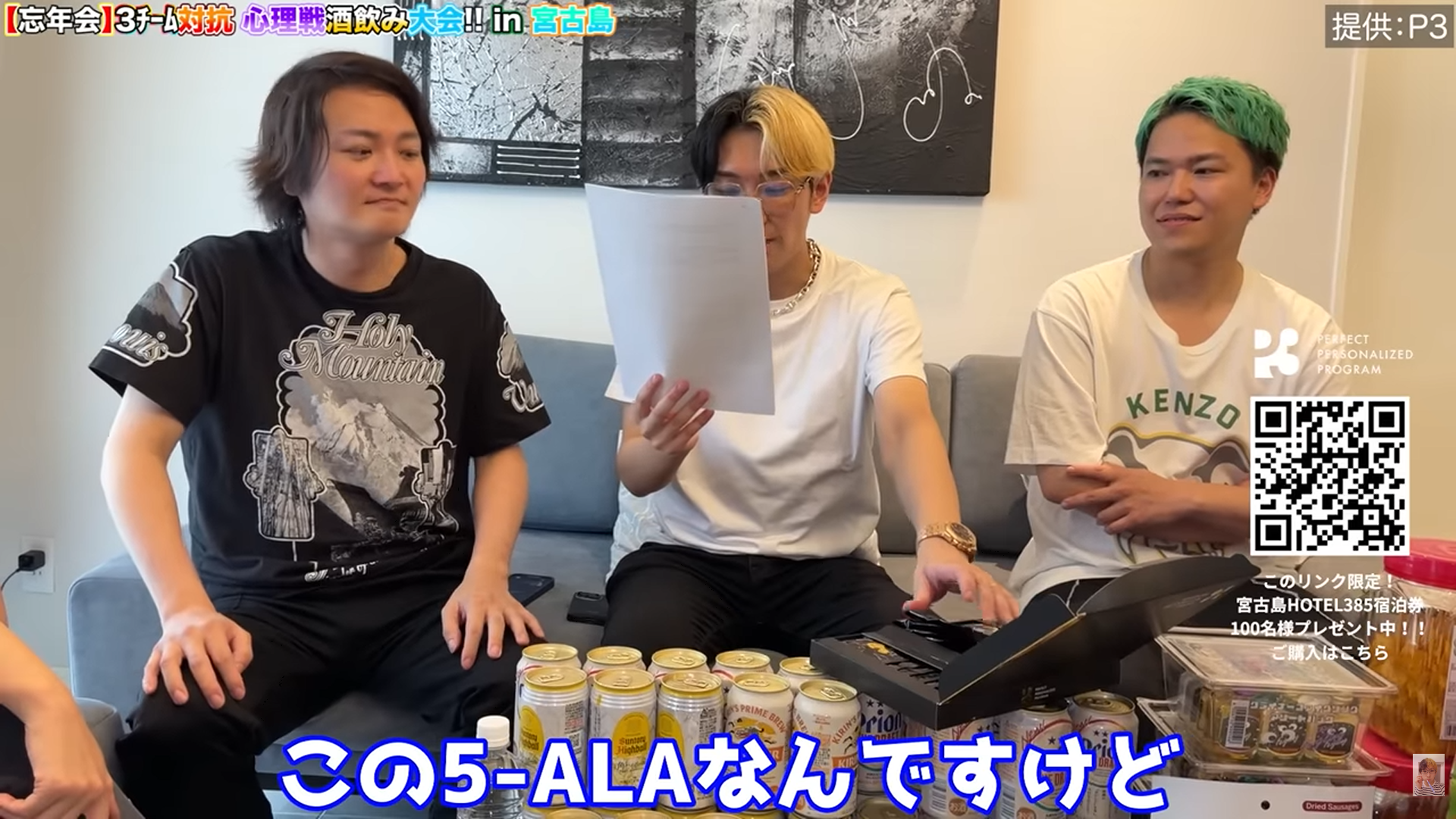 Before filming an intense drinking challenge, the cast took the supplement P3, produced by Hikaru.